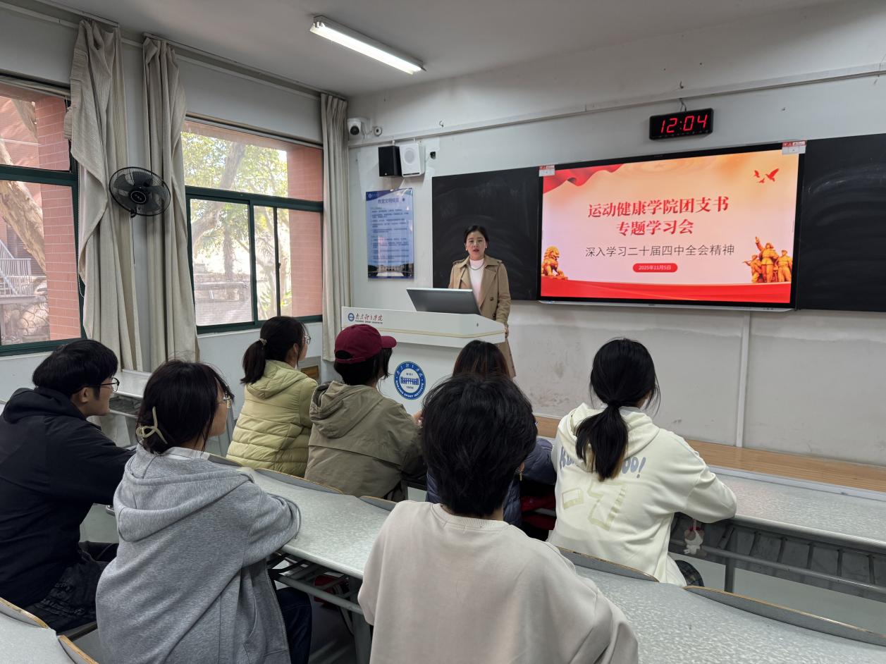 近日,为深入学习贯彻党的二十届四中全会精神,引导广大青年学生将个人成长融入国家发展大局,运动健康学院本科生党支部、分团委积极响应学校党委号召,组织开展了一系列形式多样、内容丰富的专题学习活动。