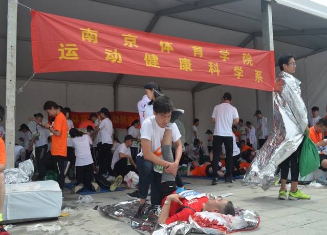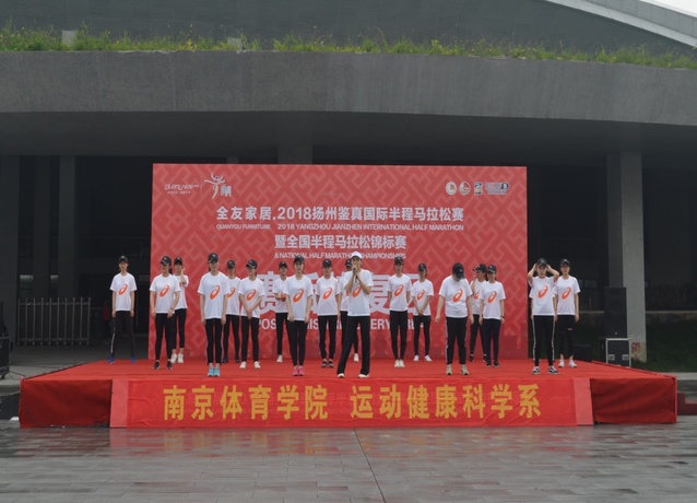 2018年4月22日上午,第十三届“扬州鉴真国际半程马拉松”在扬州体育公园鸣枪开赛,来自各国的共三万五千名选手参加此次比赛。由南京体育学院运动健康科学系主任孙飙老师带领的近三百名师生志愿者团队赶赴扬州展开赛后服务。