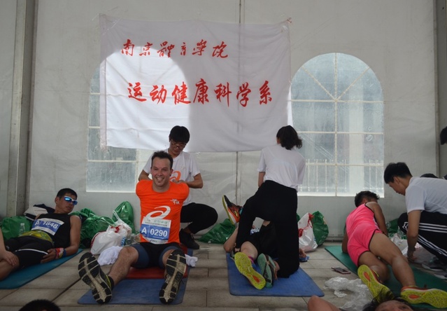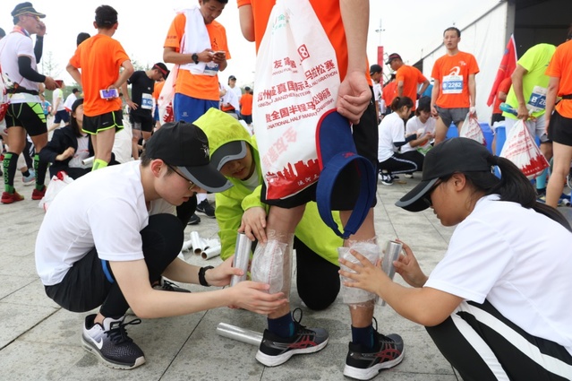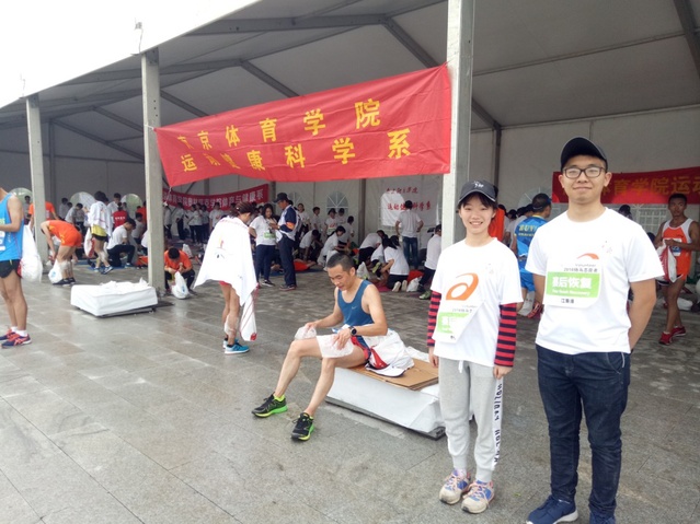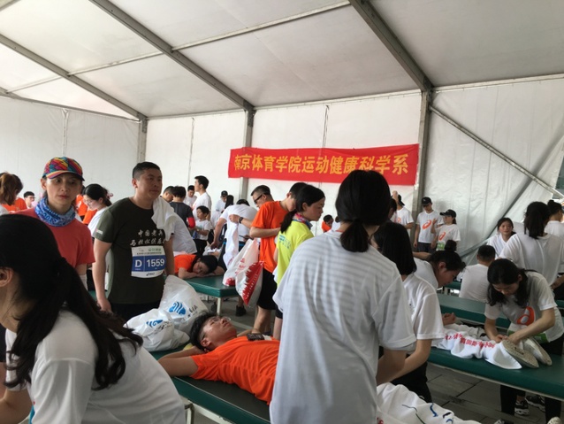 此次的志愿服务是我校第四次与“扬马”赛事组委合作,一同致力于为广大参赛选手提供精细化的特色拉伸操、拉伸、冰敷、按摩等专业赛后恢复服务。抵达“扬马”半程终点后,志愿者们开始了各项准备工作。在参赛选手陆续抵达后,志愿者们积极投入到各自的岗位中去。在冰敷、拉伸和按摩的现场,选手们有序地排起了长队,等候同学们提供专业的赛后恢复服务。比赛当天扬州下起了小雨,但淅淅沥沥的春雨并未浇灭志愿者们的热情。在三个半小时的服务中,大家分工明确、各司其职,用最真诚的微笑和最专业的服务为来自各地的选手们提供了细心周到的服务。