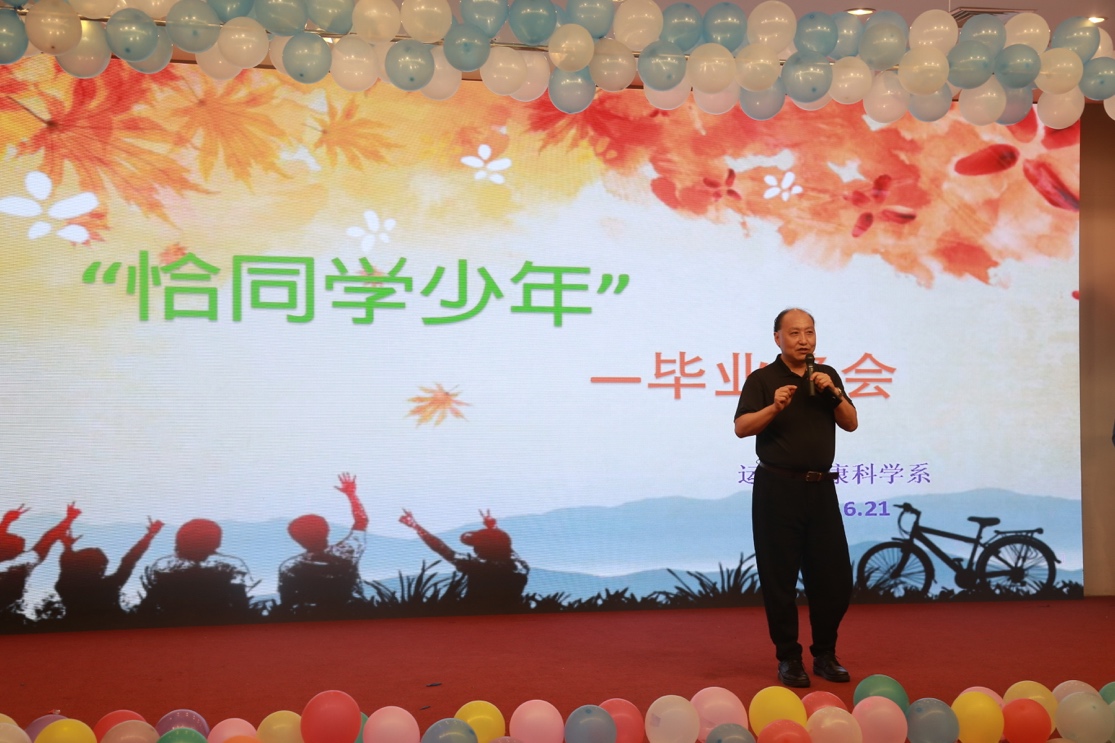 为了欢送14级毕业生,南京体育学院运动健康科学系于6月21日在灵谷寺校区图书馆报告厅举办了2018届毕业生 “恰同学少年”毕业晚会。运动健康科学系主任孙飙老师,副主任马林老师、宋雅伟老师,辅导员喻菊老师、孙华灵老师、魏晓民老师,孙强老师,徐凯老师、陈艳老师、陈雪琴老师,14级全体毕业生、低年级同学参加了本次晚会。