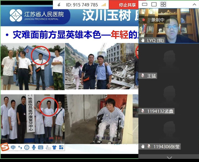 校友李勇强是我校运动人体科学专业首届毕业生、南京医科大学第一附属医院康复医学中心行政副主任、博士、硕士生导师、主任治疗师,担任中国整合医学会康复治疗专委会副主委,江苏省康复医学会社区康复治疗专委会副主委,中国康复医学会康复治疗专委会常务委员等社会职务。李勇强校友从在南体的学习生活的“初心与使命”谈起,结合自身经历,讲述了其在专业学习道路上克服困难、直面挫折,用勤奋和钻研取得一个又一个突破的正能量故事;分享了在工作岗位上坚持探索、勇于担当,在汶川地震、玉树地震、援疆建设等国家需要的重大和紧急时刻挺身而出的“逆行者”情怀。尤其是在2018-2019年援疆担任克州人民医院副院长、康复科主任期间,主持援疆重大项目“克州医养结合健康扶贫养老中心”的建设工程,并用10个月时间建立了一支40多人的康复团队、拓展了6个临床科室,大大推动了克州康复医学发展,央视新闻联播专门做了报道。李勇强校友还和大家就新冠肺炎疫情的防护做了指导和交流,从康复专业的角度分析了患者的康复原则和方法。整场线上交流李勇强校友娓娓道来、金句频出,师生们认真聆听、深受启发,在互动提问环节师生们积极踊跃、气氛热烈。