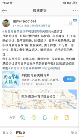 三、“青春有我,奋斗有我”--“新时代江苏青年精神”微博话题互动