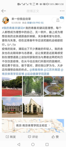 运动健康学院学生参与微博互动截图