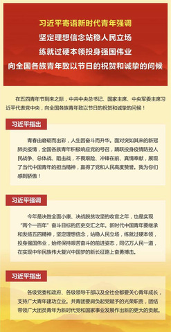 五四青年节如期而至,习总书记寄语这一代的新青年:青春由磨砺而出彩,人生因奋斗而升华。今天的新青年,在祖国需要他们的地方,奋勇挺身。在决胜全面小康、脱贫攻坚、抗击疫情等伟大斗争中,新时代新青年坚定理想信念,不惧艰险,始终保持着艰苦奋斗的前进姿态,冲在前线,是他们用青春书写国家的富强,是他们用实力彰显中华民族伟大复兴中国梦的决心。