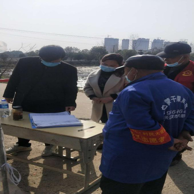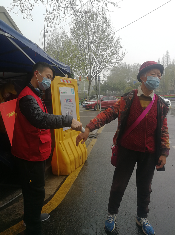 我院学生志愿者于飞正与当地志愿者一起,对过往人员和车辆进行体温测量和防疫知识宣传。