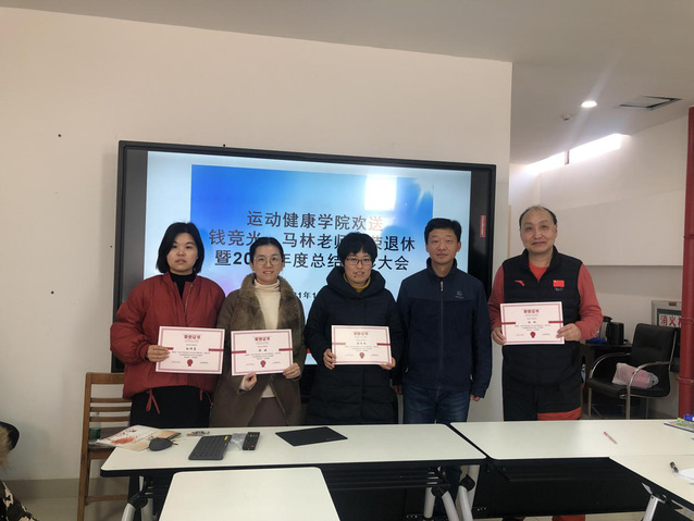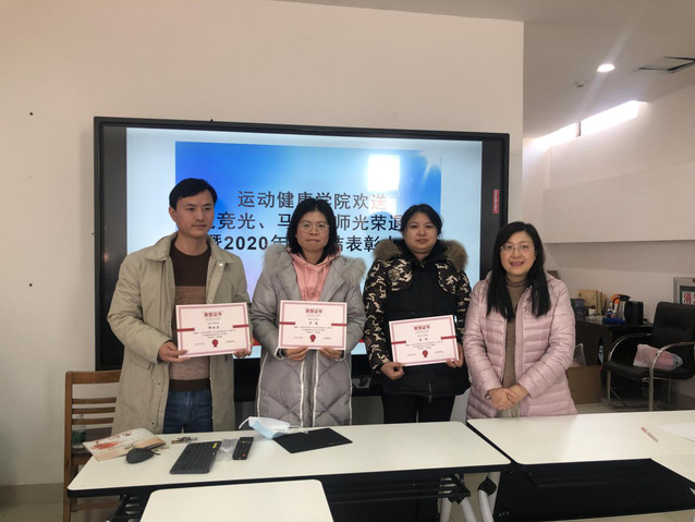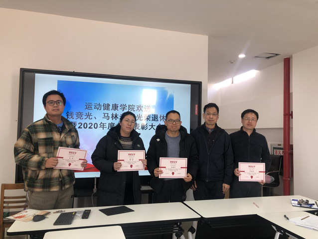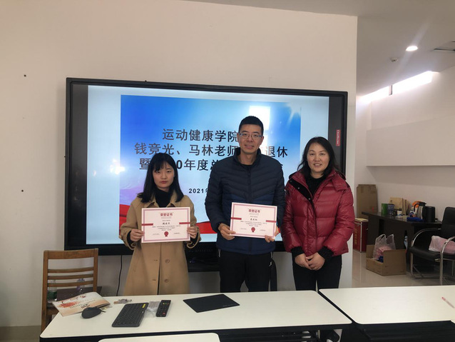 会议最后,领导班子集体为孙飙、戴剑松等14位老师颁发了运动健康学院2020年度工作贡献奖。院长汤强就学院一年来的工作进行简单总结,提出学院工作、科研建设、学工工作、教学工作新的一年仍要不断推进。党总支书记王猛也对学院教师一年来的辛苦工作表示感谢,并提出疫情防控期间依然要抓紧各项业务工作。