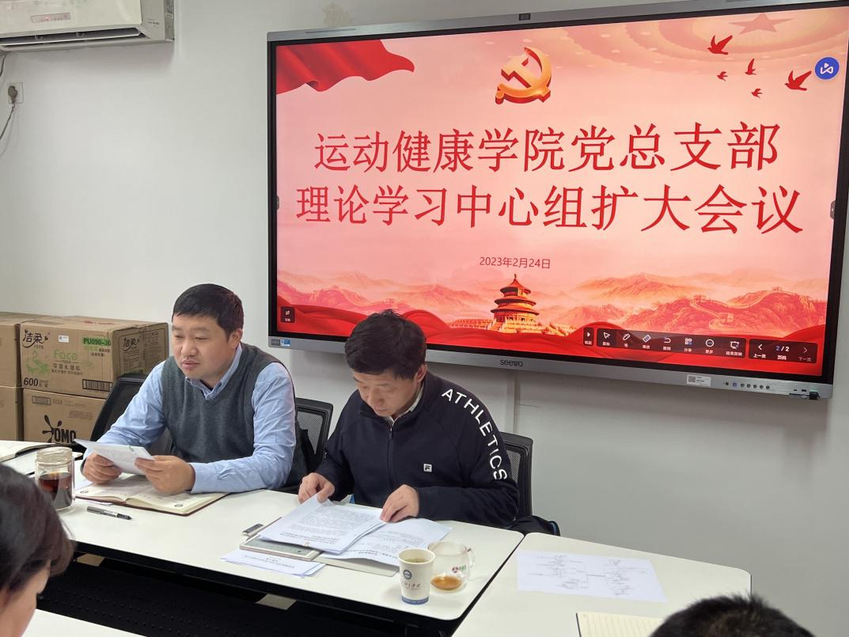 2月24日上午,运动健康学院党总支部在教学办公楼108会议室召开2023年度第一次党总支理论学习中心组(扩大)学习会,重点学习习近平总书记在学习贯彻党的二十大精神研讨班开班式上的重要讲话精神、习近平总书记在党的二十届一中全会上的重要讲话精神、中国共产党第二十届中央纪律检查委员会第二次全体会议精神和《中国共产党章程》,学院党总支书记丁永亮、院长汤强、副书记阚妮妮、副院长赵彦、各支部书记参加学习。学院党总支书记丁永亮主持此次会议并领学。