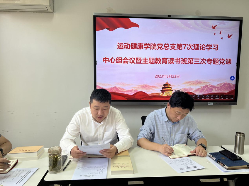 5月23日,运动健康学院党总支于教学办公楼108会议室开理论学习中心组会议暨主题教育读书班第三次专题党课。重点学习了习近平总书记关于调查研究重要讲话和指示精神以及《习近平著作选读(第二卷)》《习近平新时代中国特色社会主义思想专题摘编》有关篇章内容,参加此次学习会议的有学院党总支书记丁永亮、院长汤强、副院长赵彦、各党支部书记、各系主任、学工办主任、分团委负责人和办公室人员。丁永亮书记主持会议,副院长赵彦领学并讲授专题党课。