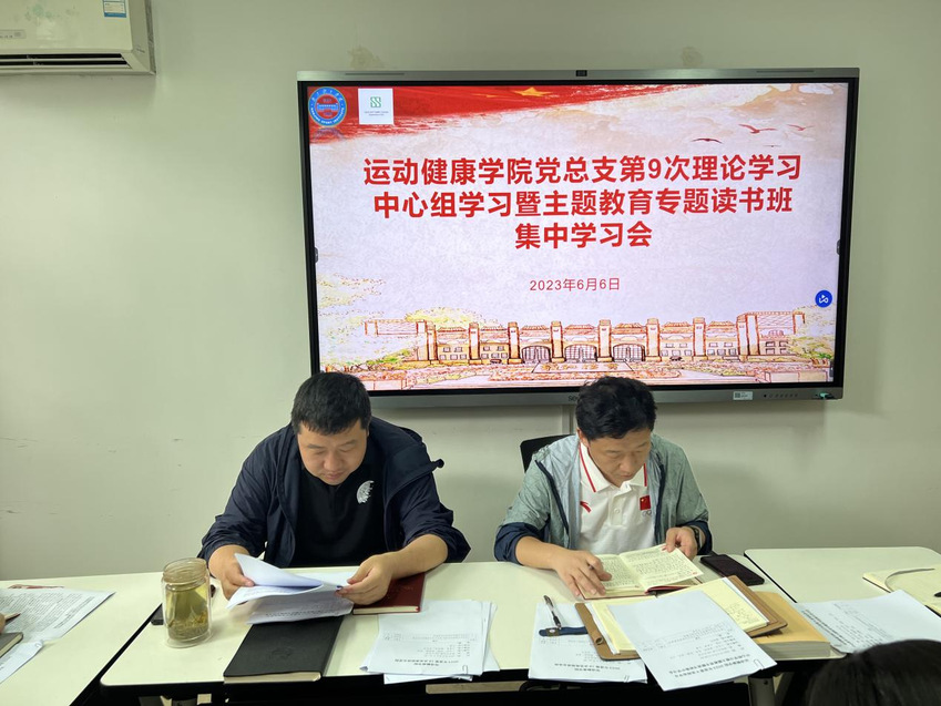 6月6日上午,运动健康学院党总支召开理论学习中心组学习暨主题教育专题读书班集中学习会,会议在教学办公楼108会议室召开。学院党总支书记丁永亮、院长汤强、党总支副书记阚妮妮、副院长赵彦、各党支部书记、各系主任、学工办主任、分团委负责人和办公室人员参加此次学习会议。